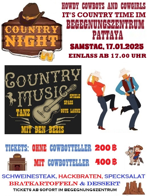 Jetzt gilt es den Blick nach vorne zu richten auf die zweite Hälfte der Hauptsaison, die erfahrungsgemäß bis Ende März/Mitte April andauern wird. Mit der “Country Night” im Januar, der Karnevalsveranstaltung “Abenteuer in Rio” im Februar und der “Oldies Night” im März stehen noch drei weitere unserer beliebten Abendveranstaltungen auf dem Programm. Neben den beiden bereits angekündigten Gemeindeausflügen in die Provinz Chachoengsao und nach Ancient City im Januar, werden zwei weitere Tagestouren im Februar angeboten werden: nach Ayutthaya und eine weitere in der Provinz Chonburi. Ab dem 6.1. finden auch wieder die zahlreichen Kurse im Begegnungszentrum statt und an den Wochenenden gibt es wieder einige interessante Info-Veranstaltungen sowie natürlich auch weiterhin unsere gut besuchten Gottesdienste.
